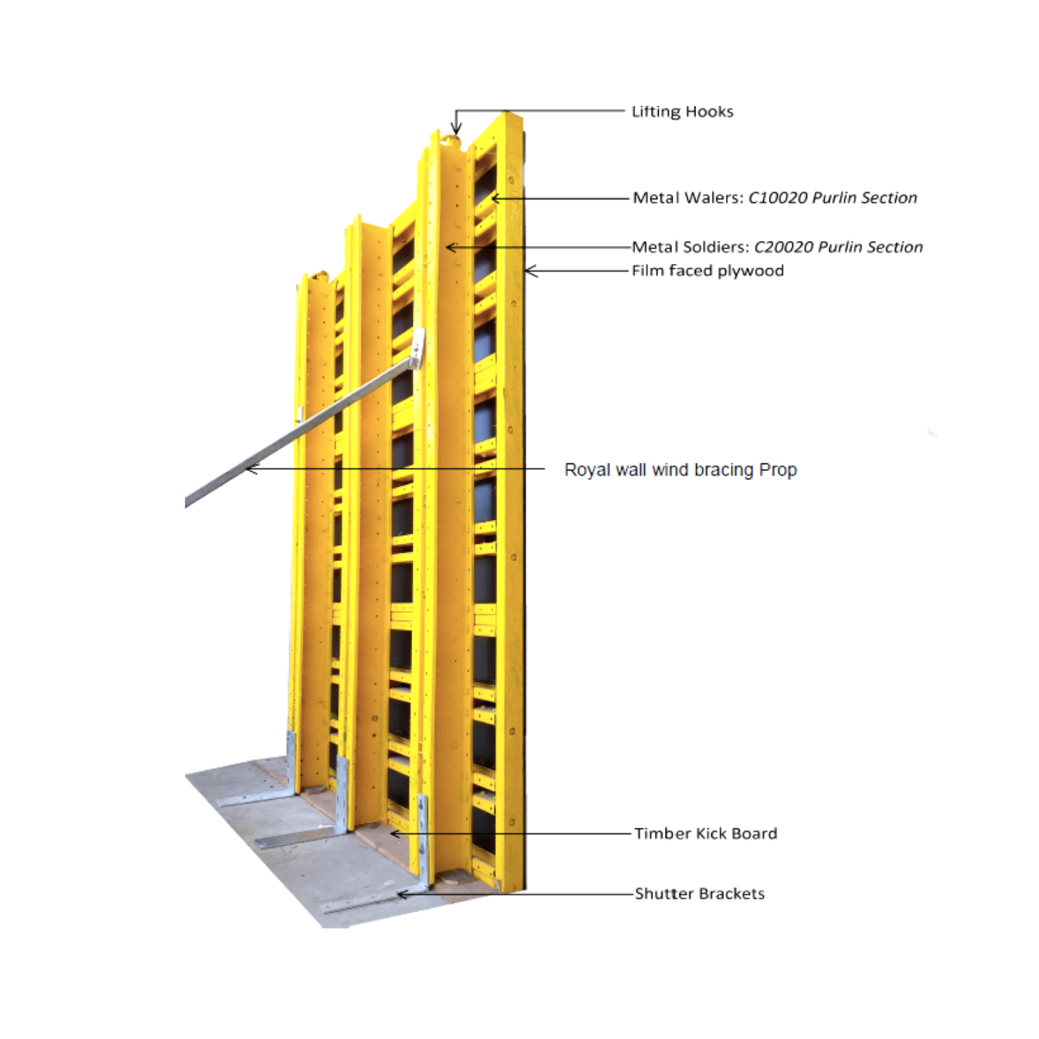 Crane-liftable, robust formwork panels for fast installation and premium concrete finishes. Twin steel purlin frames, film-faced plywood, concrete pressures up to 60 kPa, in standard heights of 3.61 m and 2.4 m. Perfect for tall in-situ walls and infrastructure projects.