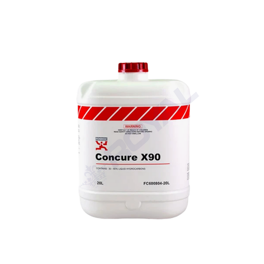 Fosroc Concure X90 is a water-based, hydrocarbon curing compound formulated for outdoor concrete. Applied to fresh surfaces, it forms a moisture-retaining film that satisfies AS 3799 requirements, then photo-oxidises under UV exposure—completely dissipating in about 55 days, so no mechanical removal is needed before subsequent finishes.